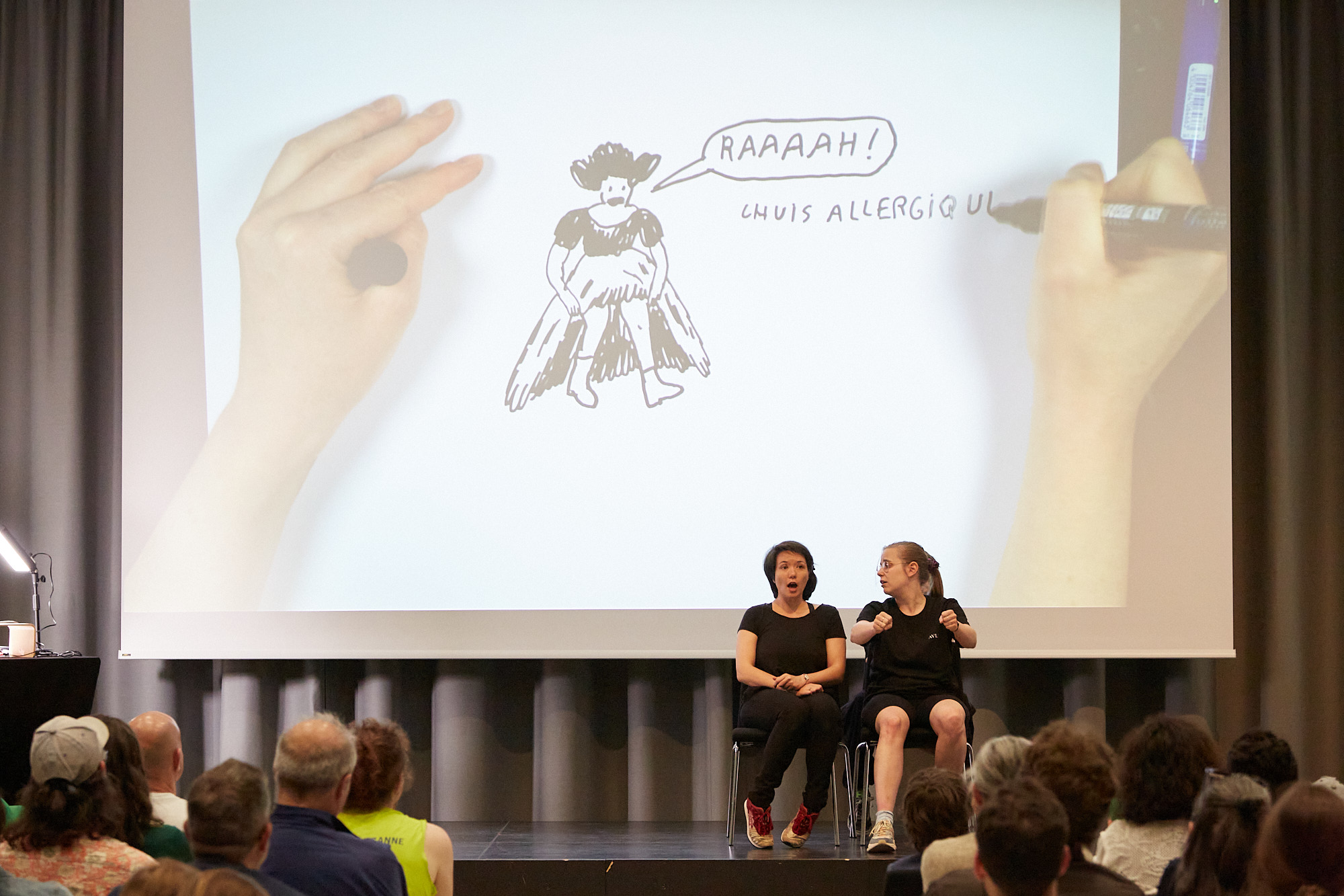 Les improvisateurs et improvisatrices de la Compagnie des deux marchés aiment les défis. ça tombe bien, Margaux Manchon – à qui l’on doit le récent Des faits marquants (L’Agrume, 2026) – et Max de Radiguès – dont on fête l’intégrale des deux tomes d’Eddie, Noé & Sarah (Sarbacane, 2026) – aussi. Quand ils et elles se rencontrent, ça crée un spectacle mêlant rires, dessins et inattendu.