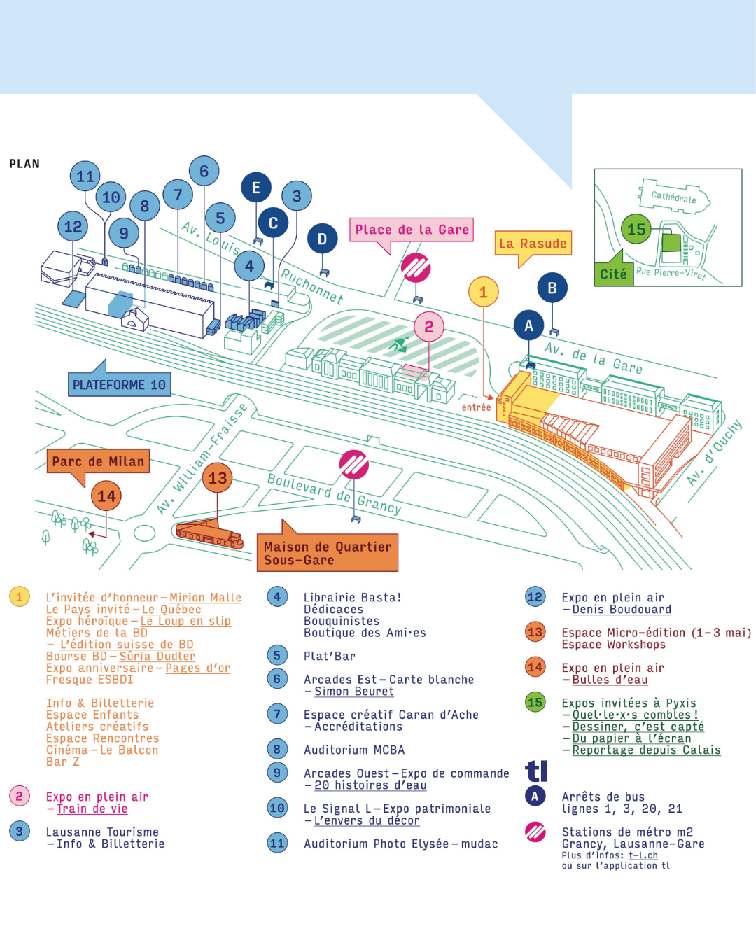 BDFIL a lieu dans le quartier de la gare de Lausanne, accessible en transports publics, à pied ou à vélo.